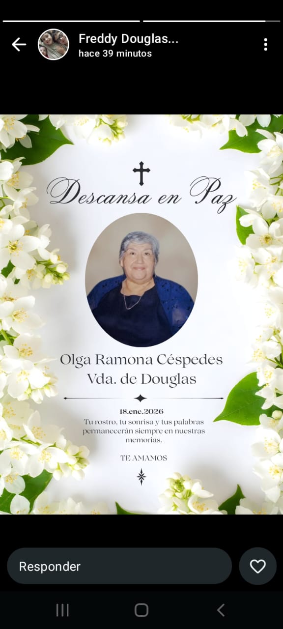 Parque Serenidad participa con mucho pesar la partida deOlga Ramona Cespedes Vda De DouglasAcompañando a familiares y amigos en este momento de dolor ante tan grande perdida, los invitamos a compartir unas palabras en su honor. |