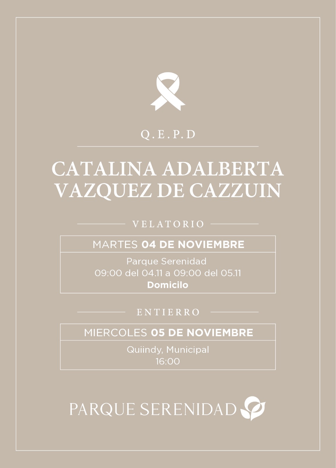 Parque Serenidad participa con mucho pesar la partida de